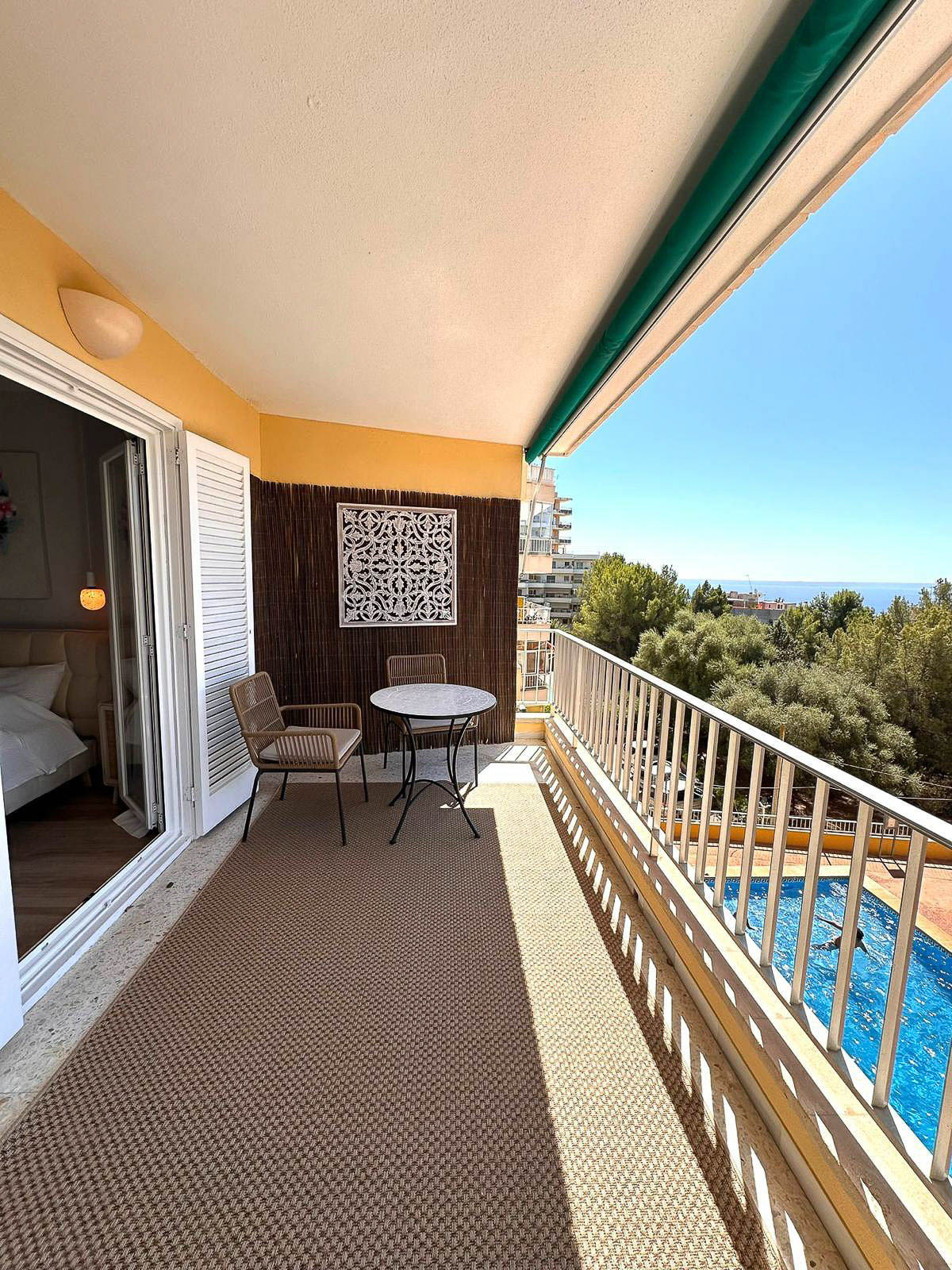 This modern, renovated 83 m² apartment with sea views awaits you in Sant Agustí, just a few minutes from Palma. The open-plan living area leads directly onto a spacious balcony, ideal for relaxed living.