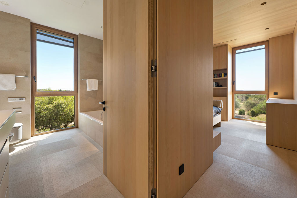 El ala privada para dormir consta de tres dormitorios, cada uno con cuarto de baño. El dormitorio principal también tiene un amplio vestidor, mientras que otro dormitorio se complementa con una habitación infantil contigua. Un aseo independiente completa esta ala.