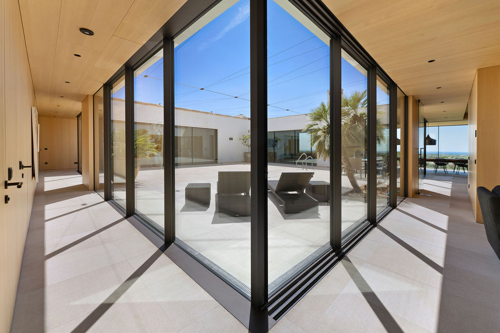 La pieza central de la casa es el patio central, inundado de luz. Una declaración arquitectónica de la villa es la piscina totalmente automatizada, que conecta a la perfección los espacios interior y exterior. La altura de la piscina se puede ajustar según las necesidades y ofrece diversión segura para el baño incluso a los miembros más jóvenes de la familia. Los amplios ventanales de casi todas las habitaciones crean un ambiente abierto y proporcionan luz natural a cualquier hora del día.