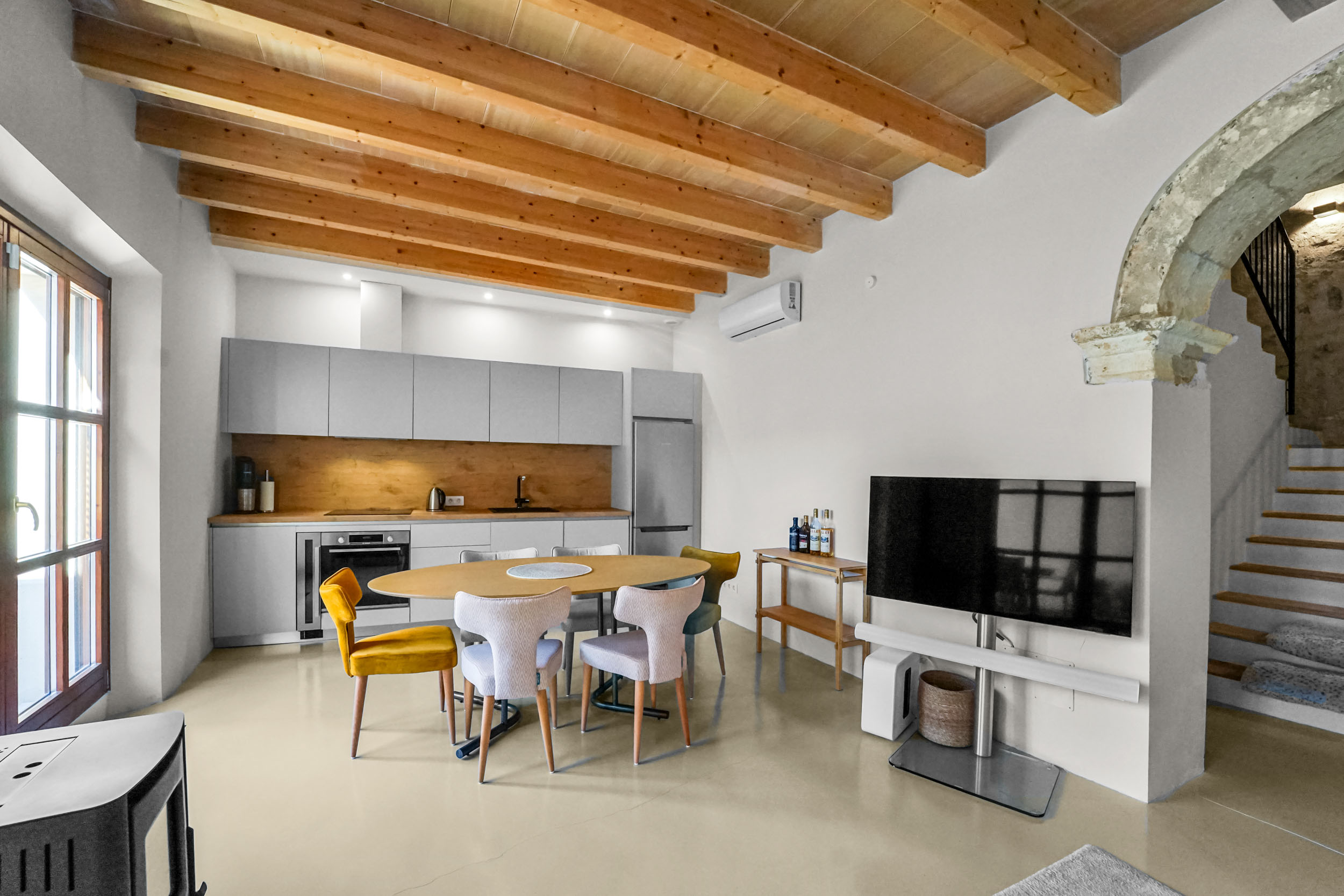 La planta baja impresiona con un salón-comedor amplio y diáfano -con un alto techo de vigas- que incluye una cocina equipada con electrodomésticos de alta calidad. Las amplias puertas de patio con doble acristalamiento se extienden por toda la fachada hacia el patio interior y garantizan la luminosidad. Cuando hace buen tiempo, las puertas abiertas de par en par fusionan las zonas interior y exterior. La espaciosa y resguardada terraza del cuidado patio interior, que recibe la cálida luz del sol desde primera hora de la tarde, ofrece paz y recogimiento. Con una gran mesa de comedor, una barbacoa de gas y una zona de estar, también es el lugar perfecto para pasar acogedoras veladas con amigos. Arriba hay tres hermosos y acogedores dormitorios, cada uno con su propio y elegante cuarto de baño, uno de ellos con bañera. El aire acondicionado (frío/calor) en todas las habitaciones y una estufa de pellets en el salón y el comedor garantizan un ambiente acogedor.