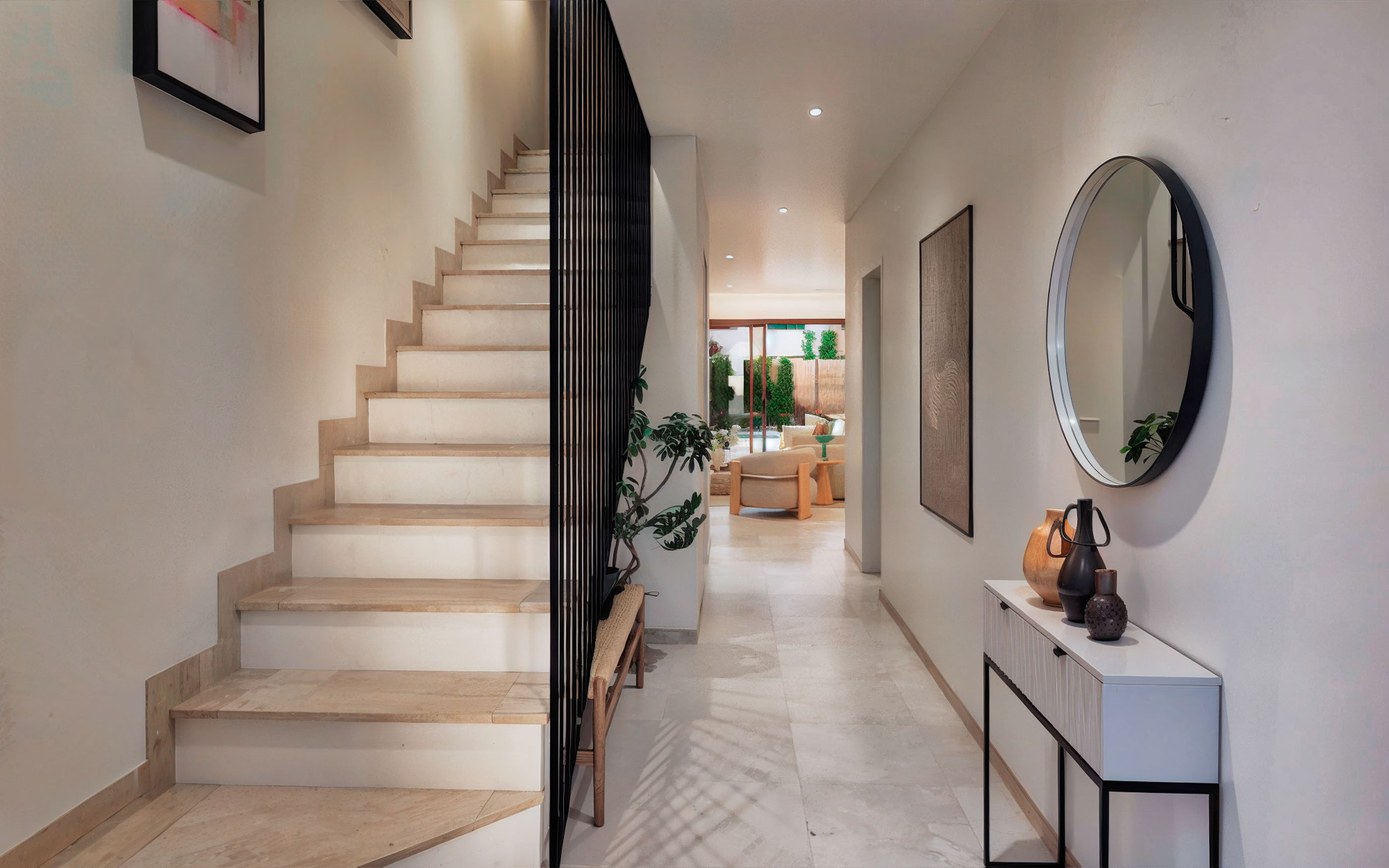 En una parcela de 127 m², las casas ofrecen una superficie construida de 144 m² y una terraza ajardinada que amplía el espacio hasta un total de 200 m². Estas viviendas se caracterizan por su amplitud y mucha luz natural en cada rincón. La planta baja dispone de una acogedora zona con cocina de diseño equipada con electrodomésticos Bosch, encimeras de Silestone, grifería Grohe y aire acondicionado inteligente. En la planta superior hay un lavadero, un detalle que optimiza la funcionalidad de la casa.