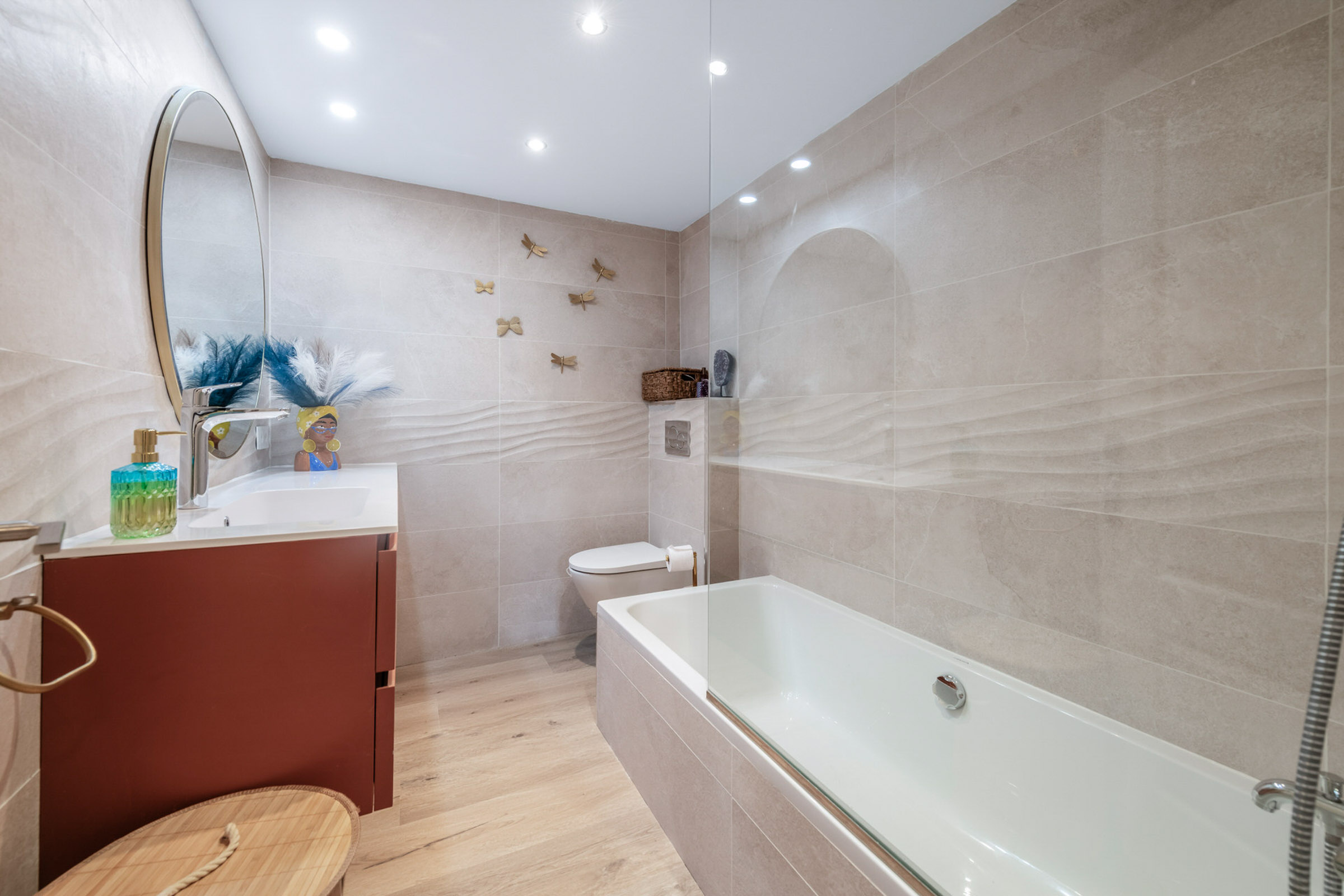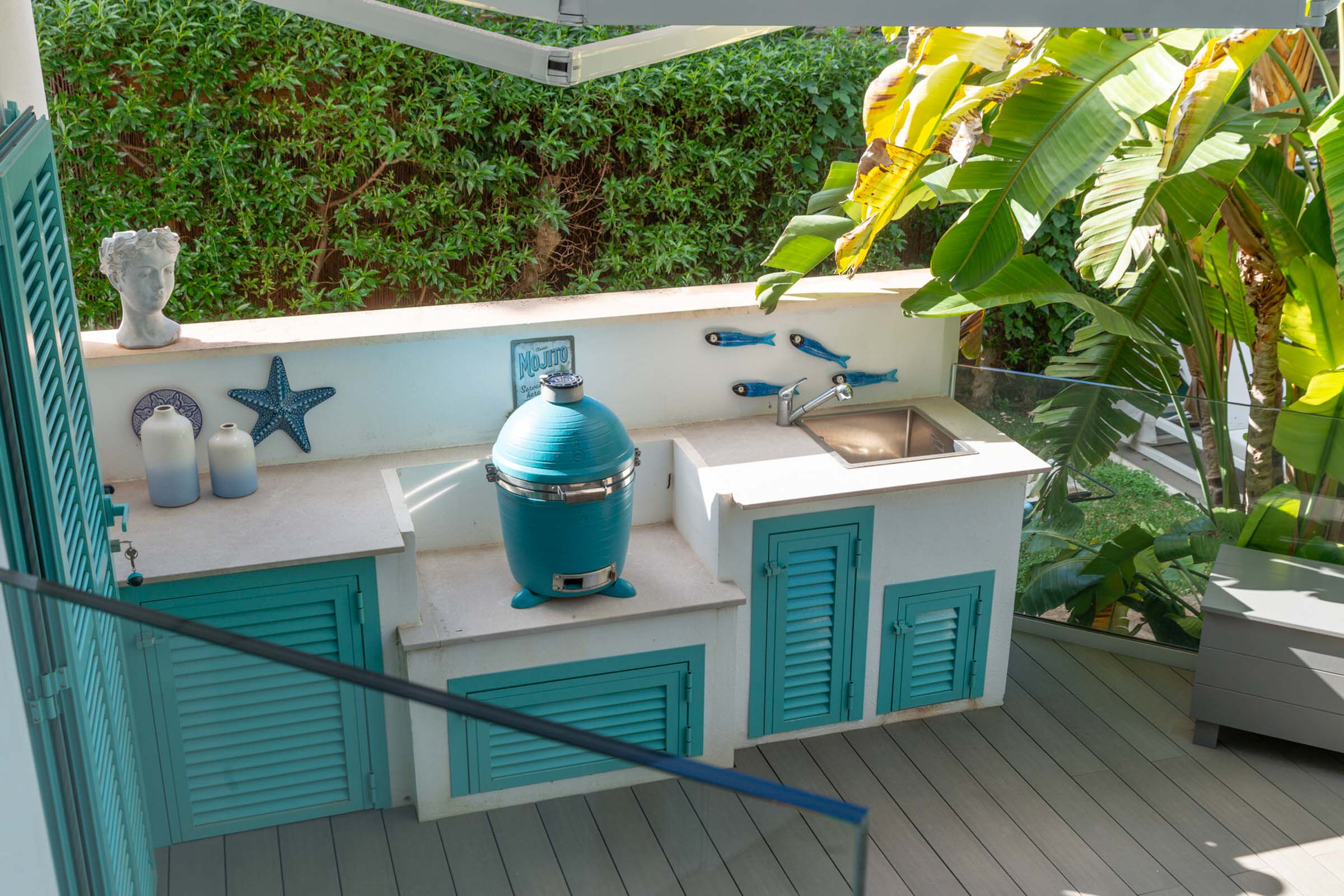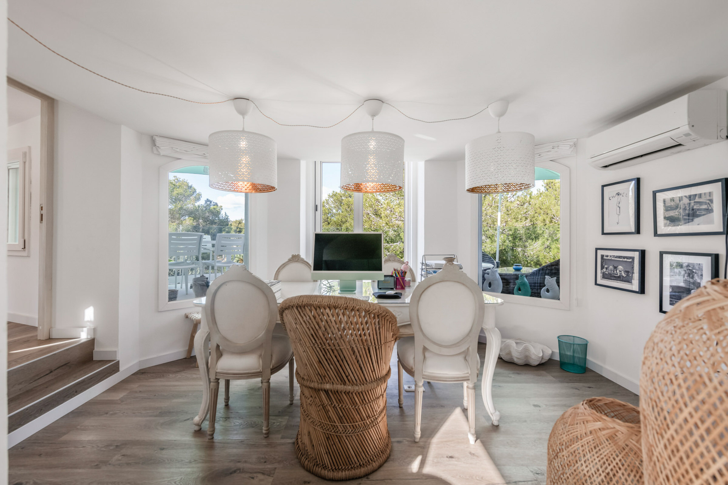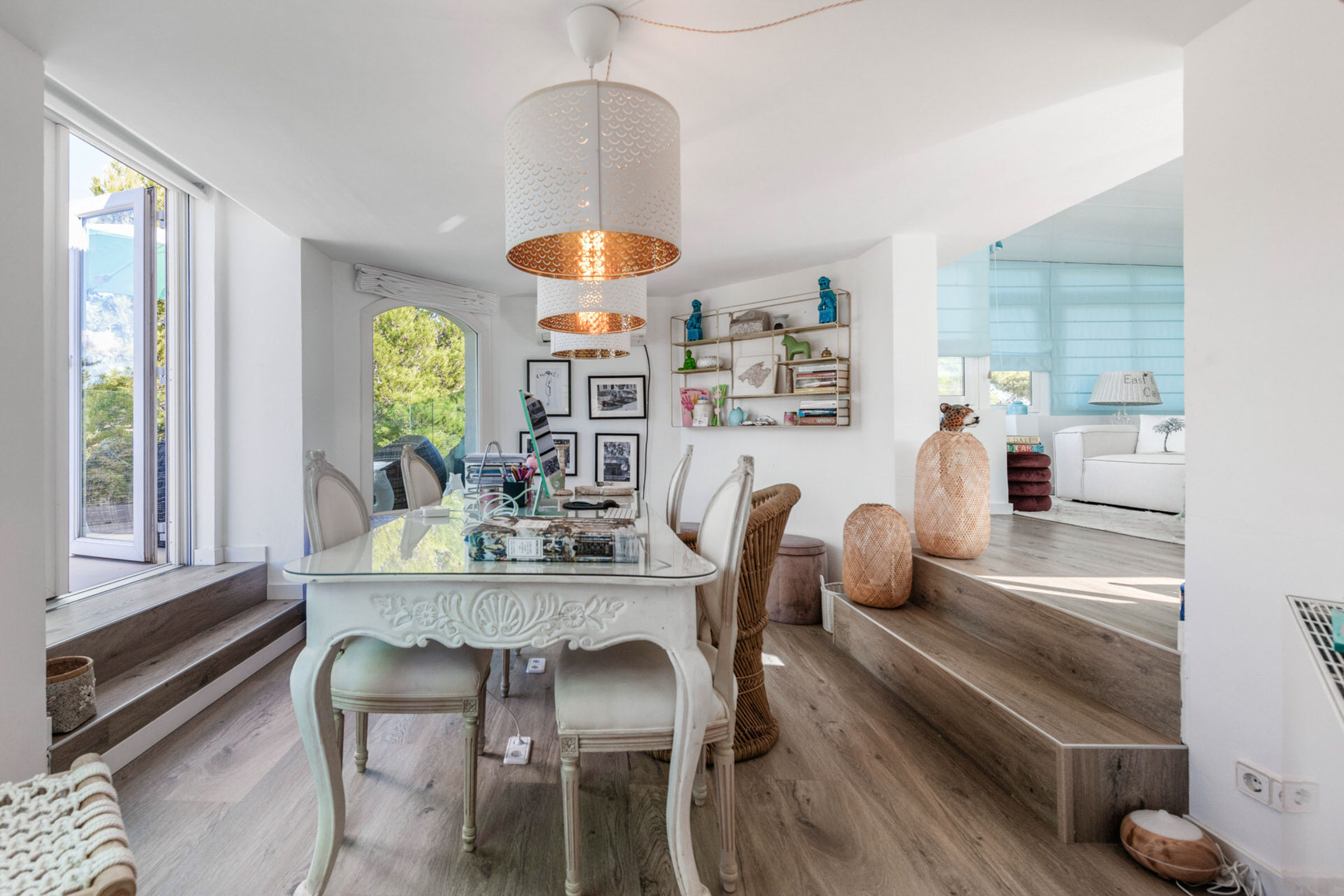 El luminoso y moderno interior combina el encanto mediterráneo con el confort. La moderna cocina se abre a las zonas de estar, inundadas de luz pero acogedoras gracias a los grandes ventanales.