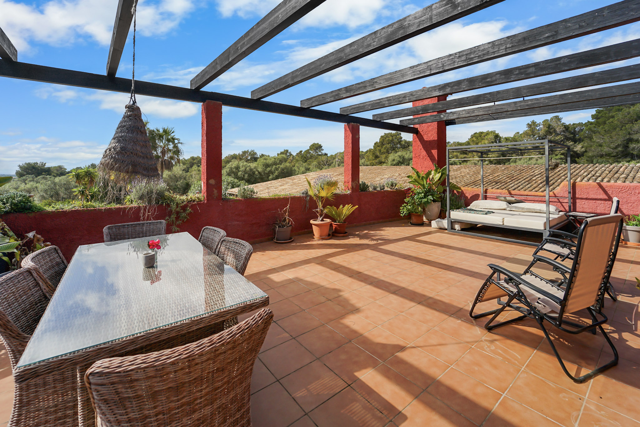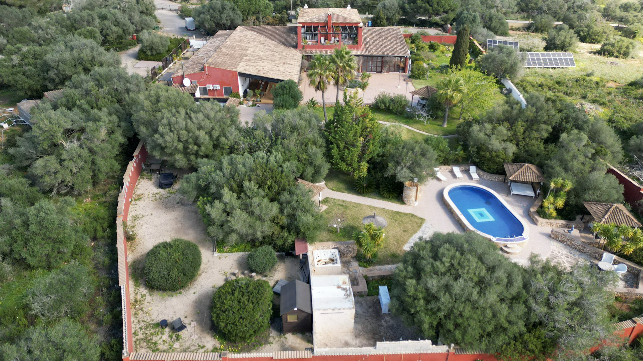 Auch im Außenbereich erfüllt das Anwesen höchste Ansprüche an Atmosphäre und Rückzug. Poollandschaft, großzügige Terrassen, Garten- und Ruhebereiche, eine Fasssauna sowie die weitläufige, uneinsehbare Grundstückssituation schaffen ein Höchstmaß an Exklusivität und Entspannung. Besonders attraktiv ist zudem die Lage: Der Golfplatz Vall d’Or befindet sich nur ca. 800 Meter entfernt, und das Meer liegt in einer Distanz von etwa 1,5 Kilometern.