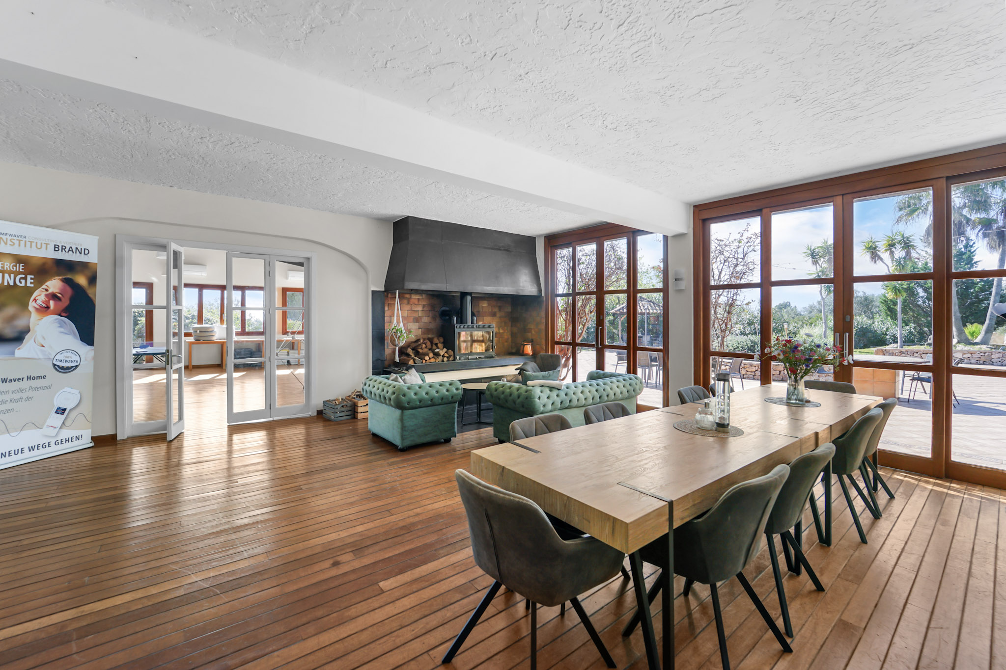 Die Architektur und Raumstruktur schaffen den idealen Rahmen für ein exklusives Private Estate, für gehobene Gastronomie oder für stilvolle Veranstaltungen in außergewöhnlichem Ambiente. Die vorhandene Restaurantlizenz sowie die Auslegung für Veranstaltungen mit bis zu 350 Gästen machen dieses Anwesen zu einer bemerkenswerten Rarität auf Mallorca.