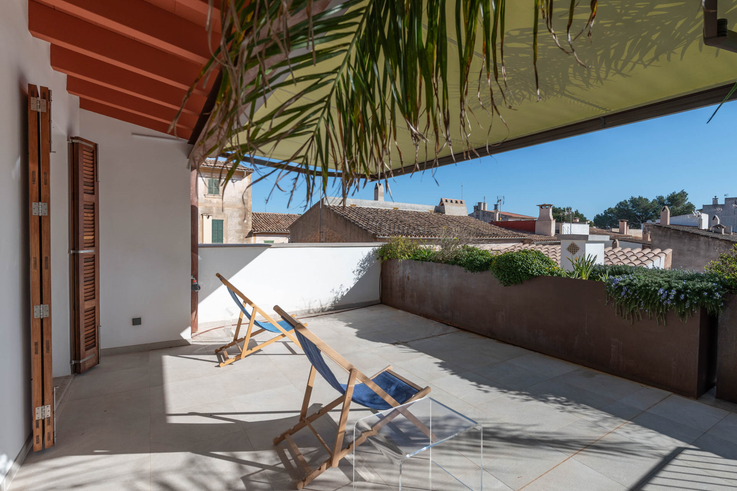 Im Obergeschoss befinden sich drei großzügige Schlafzimmer, alle mit eigenem Bad, was höchsten Komfort und Privatsphäre garantiert. Die Hauptsuite verfügt zudem über einen zusätzlichen separaten Raum, ideal als Ankleidezimmer, Büro oder privater Salon. Von einer offenen Galerie aus gelangt man auf die spektakuläre Dachterrasse, einen privilegierten Ort, von dem aus man einen herrlichen Panoramablick auf Campos und die umliegenden Berge genießen kann.