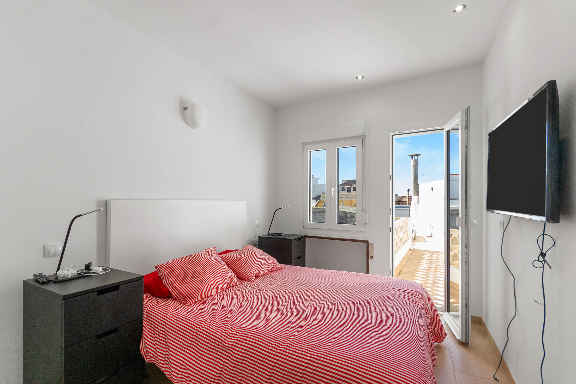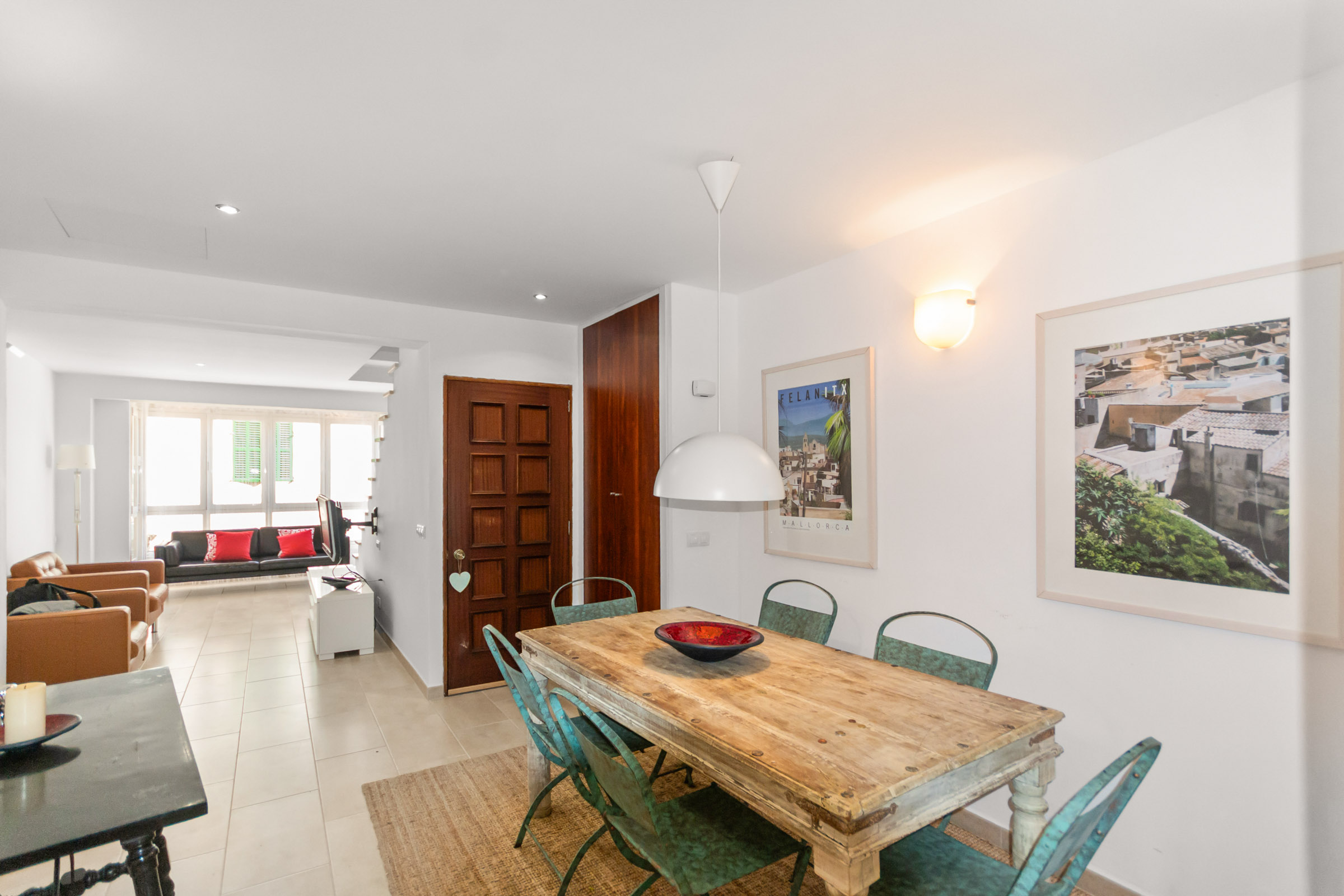 Über der Wohnung im ersten und zweiten Stock befindet sich ein Doppelhaus. Im ersten Stock befinden sich die Küche mit einer kleinen Terrasse, das Esszimmer und das Wohnzimmer. Durch das Wohnzimmer gelangen wir in den ersten Stock, wo sich die beiden Schlafzimmer mit ihren jeweiligen Badezimmern befinden. Eines der Schlafzimmer hat eine kleine private Terrasse.