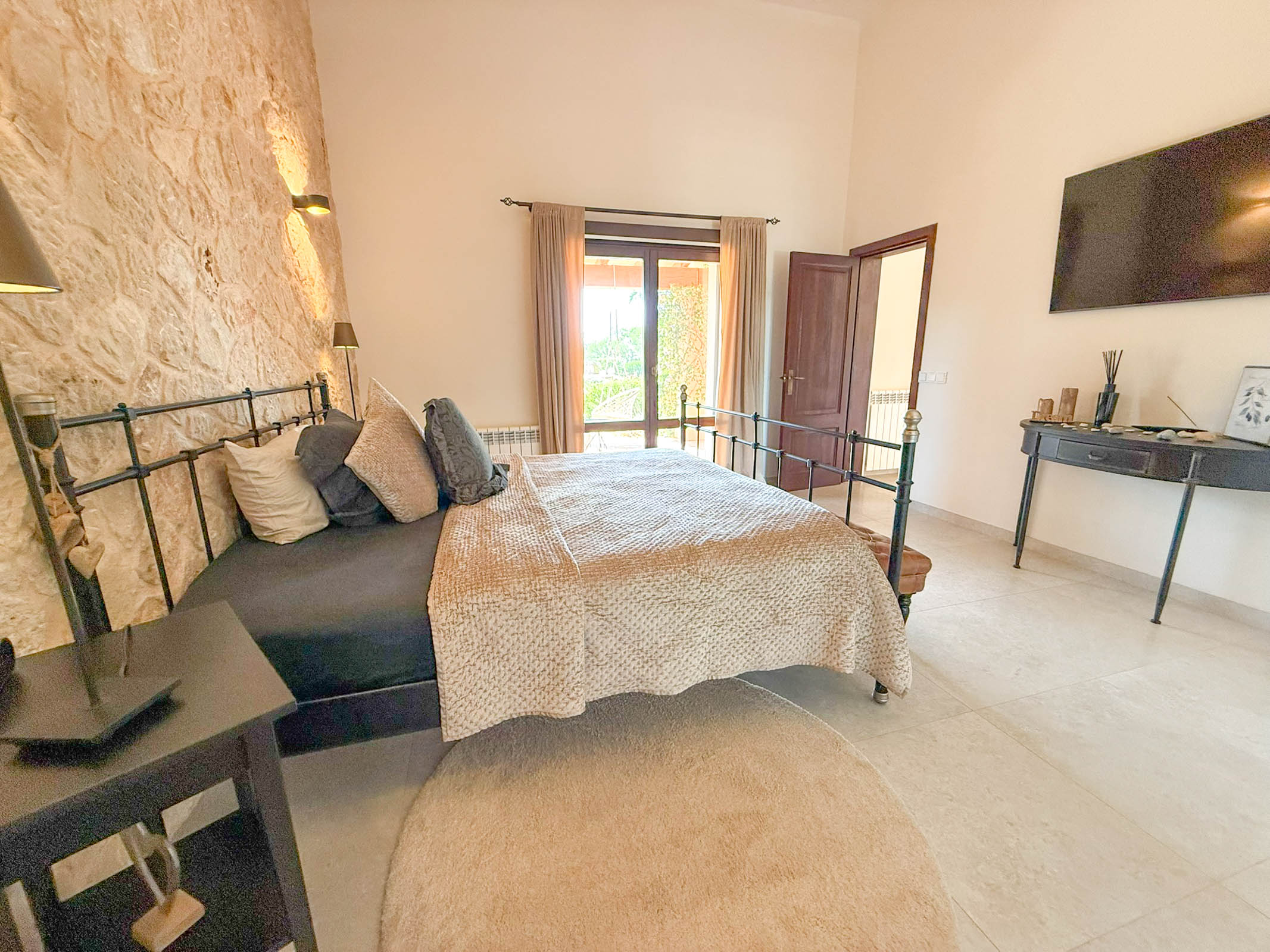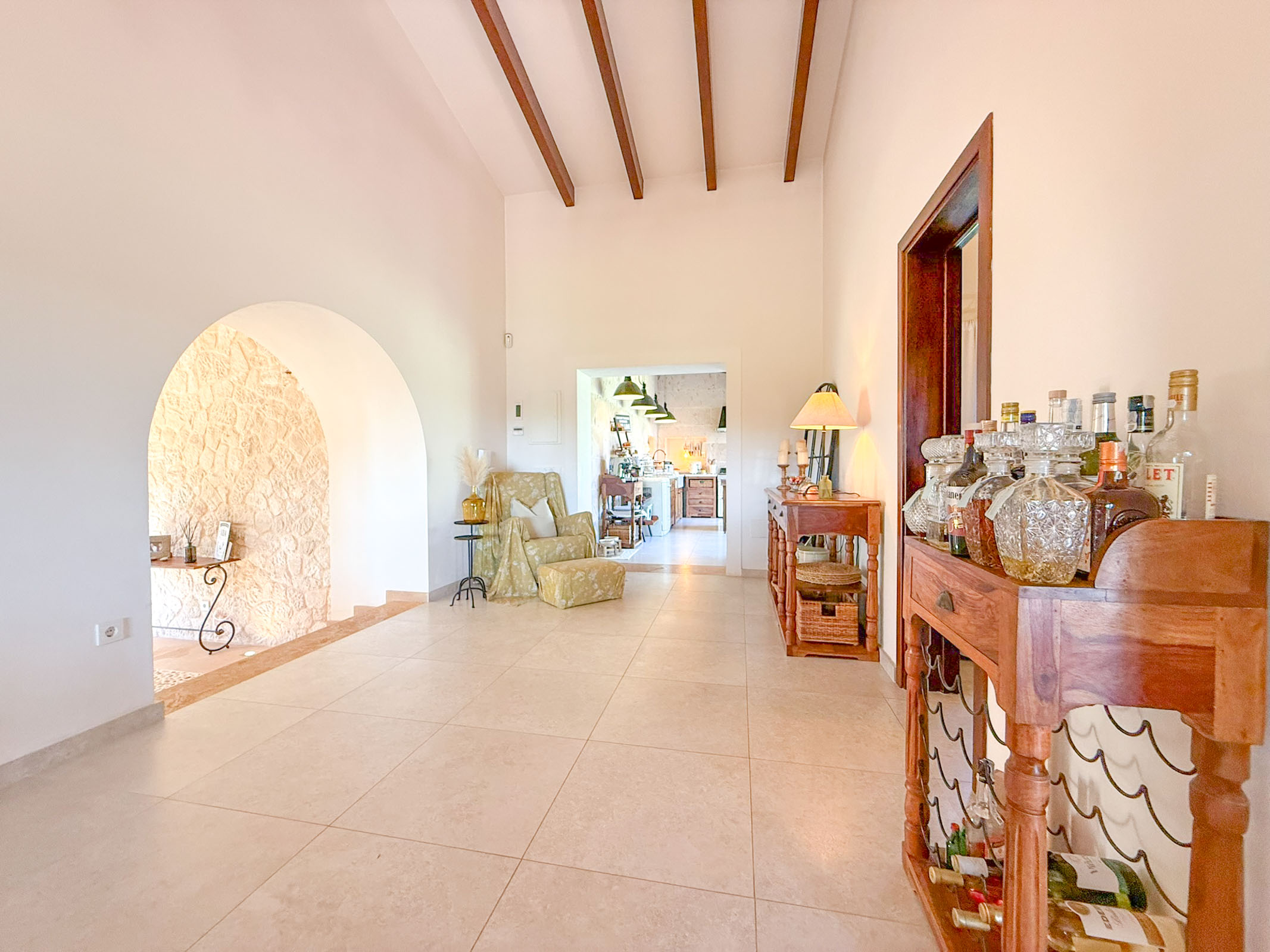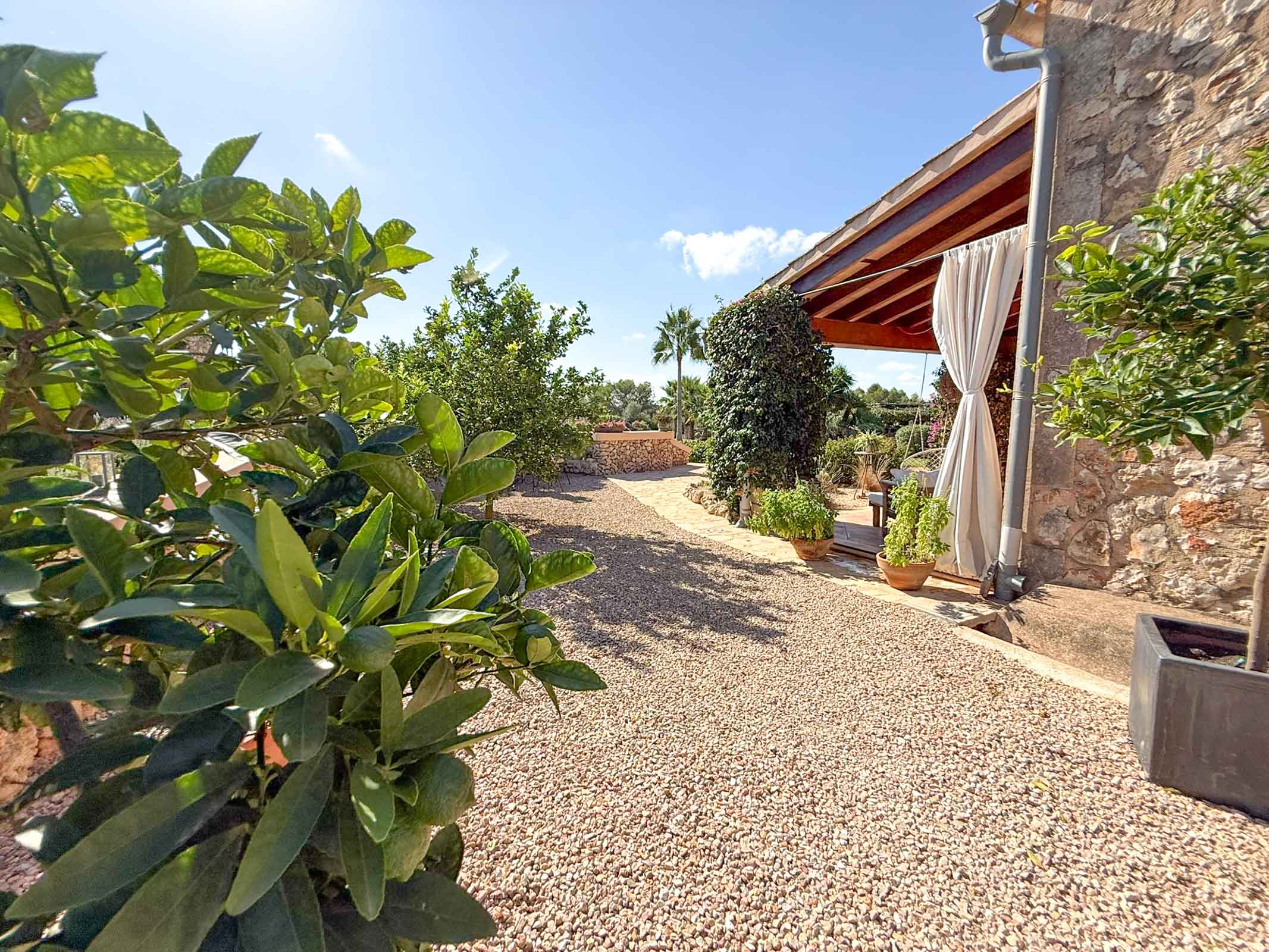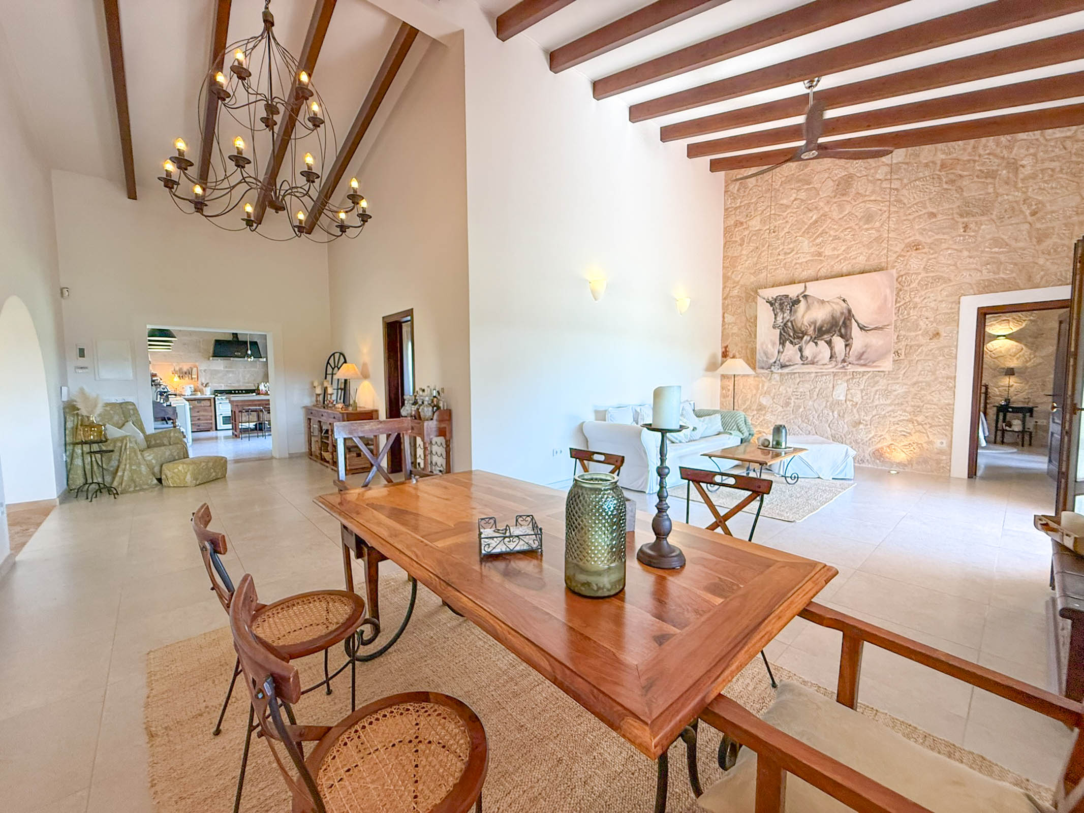 Die liebevoll sanierte Steinfinca erzählt Geschichten vergangener Zeiten, während sie zugleich modernen Komfort auf höchstem Niveau bietet auf 331 m2 purer Wohnfläche. Warme Naturmaterialien, Lichtspiele auf den Steinwänden und der Duft von Holz und mediterranen Pflanzen schaffen eine Atmosphäre, die sofort berührt.