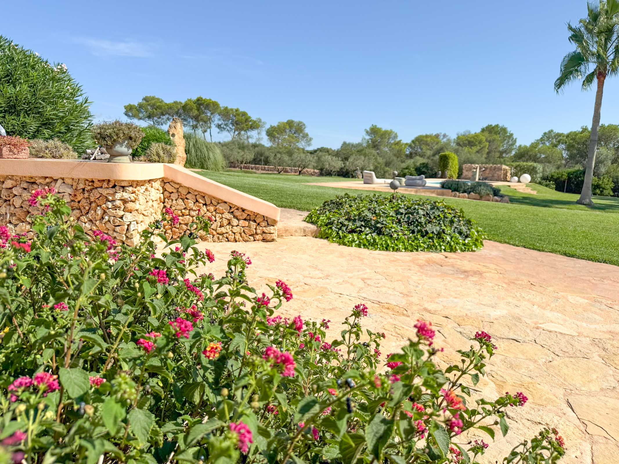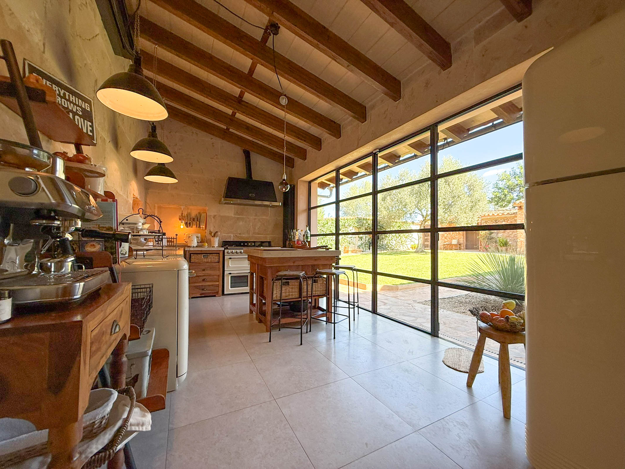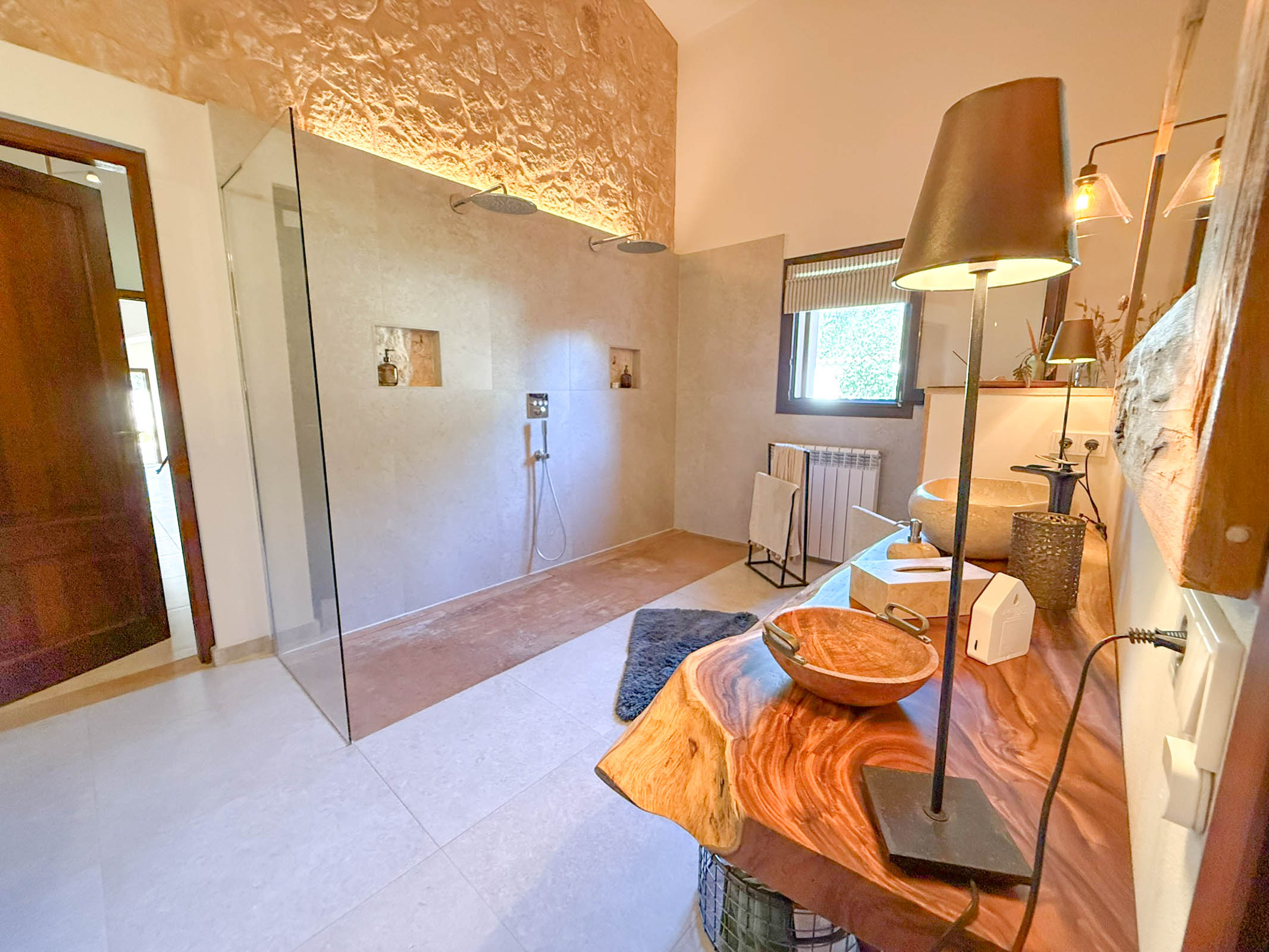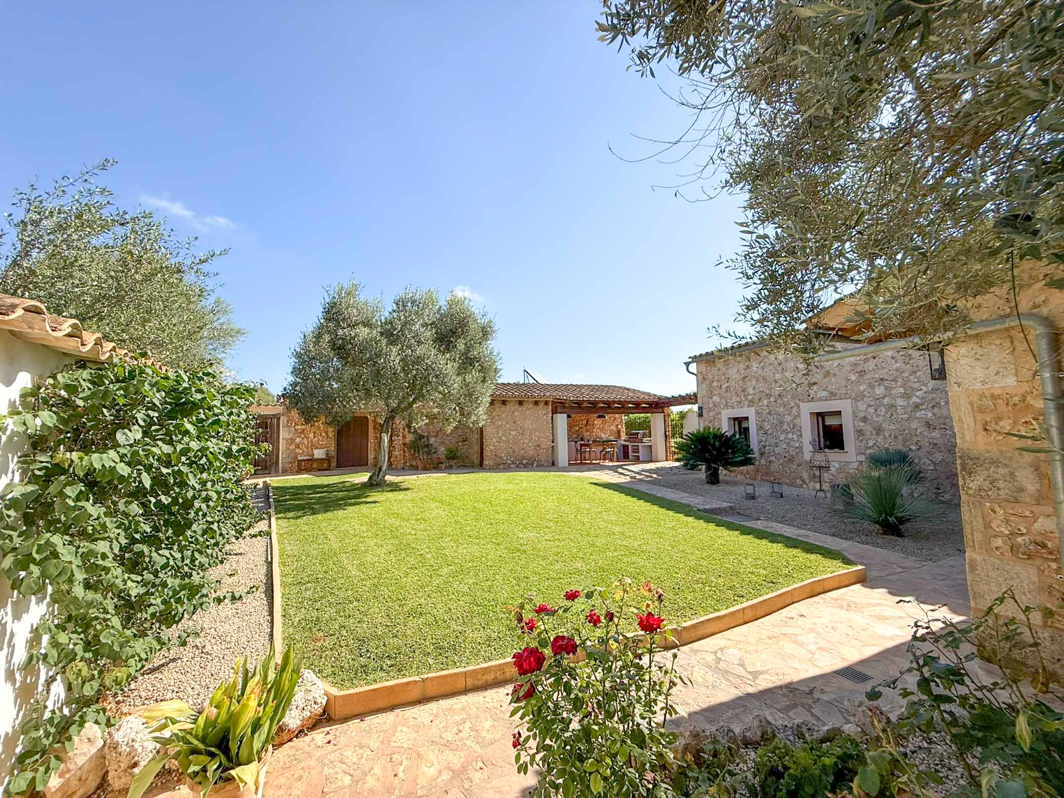Die liebevoll sanierte Steinfinca erzählt Geschichten vergangener Zeiten, während sie zugleich modernen Komfort auf höchstem Niveau bietet auf 331 m2 purer Wohnfläche. Warme Naturmaterialien, Lichtspiele auf den Steinwänden und der Duft von Holz und mediterranen Pflanzen schaffen eine Atmosphäre, die sofort berührt.