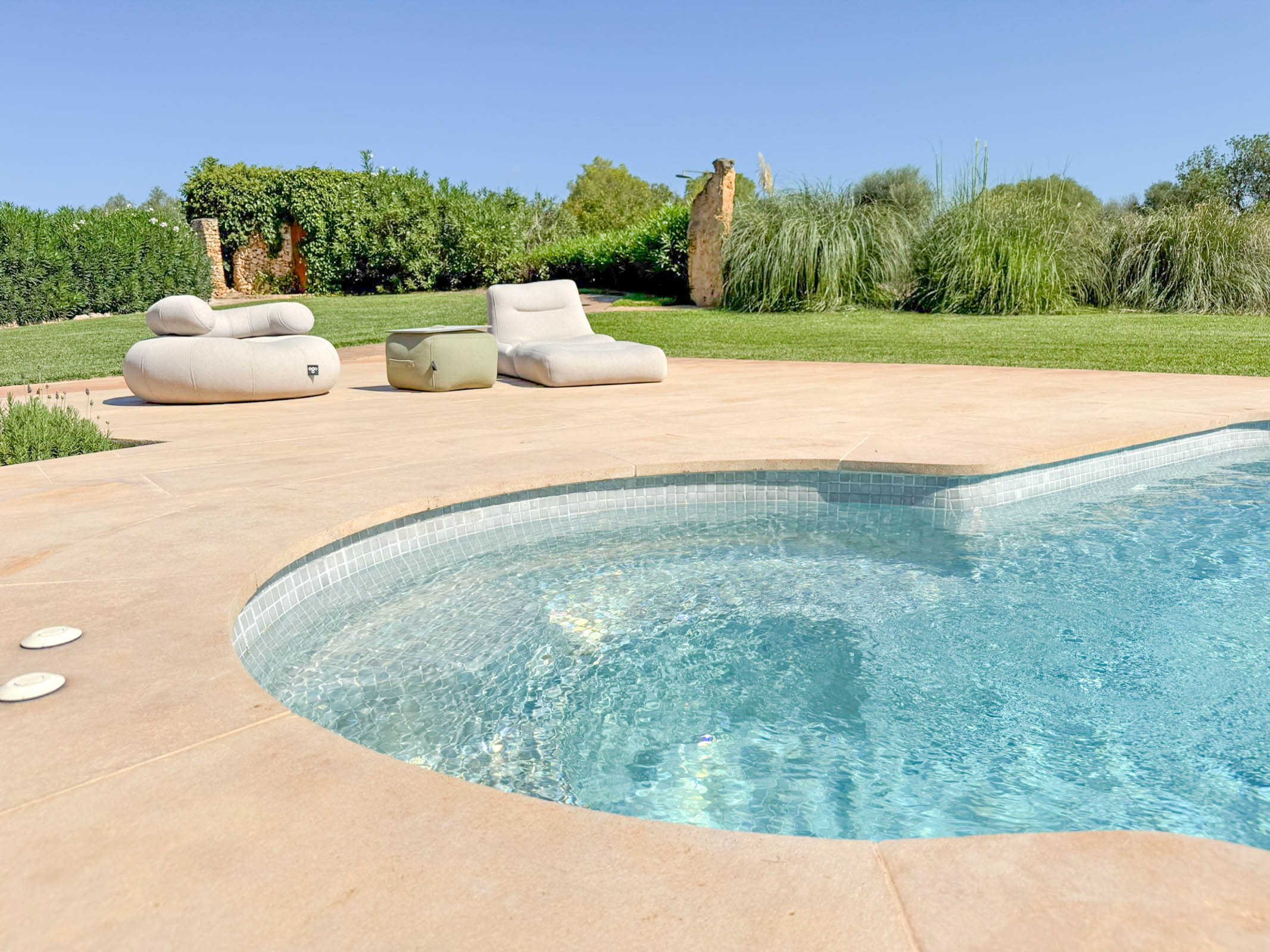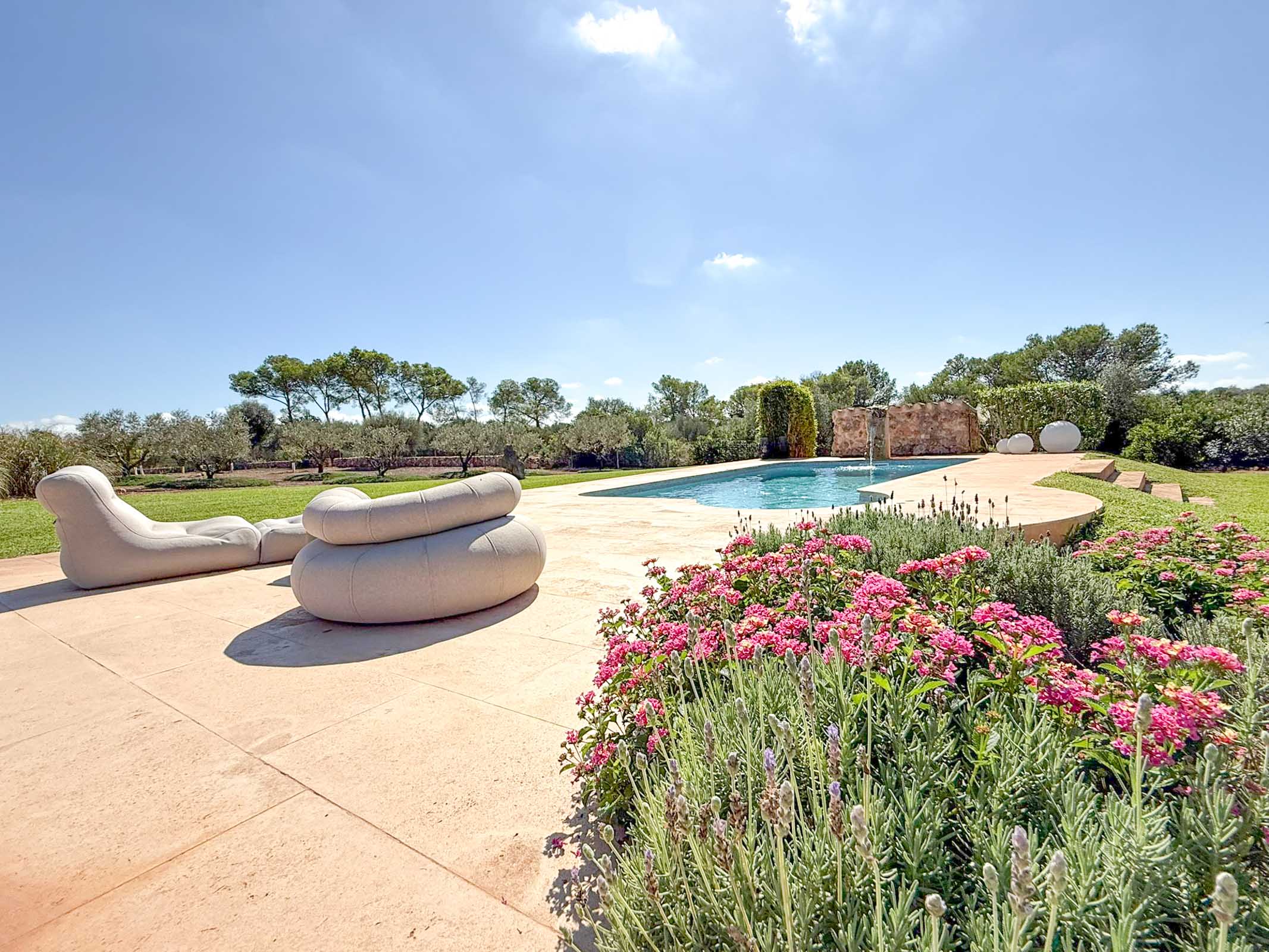 Eingebettet in die sanften Hügel zwischen Campos und Felanitx, mit freiem Blick auf das majestätische Kloster Sant Salvador, eröffnet sich hier ein Ort, an dem die Zeit langsamer zu vergehen scheint. Schon bei der Ankunft spürt man die besondere Ruhe dieses Anwesens – ein Rückzugsort, der Geborgenheit schenkt und gleichzeitig Weite atmen lässt.