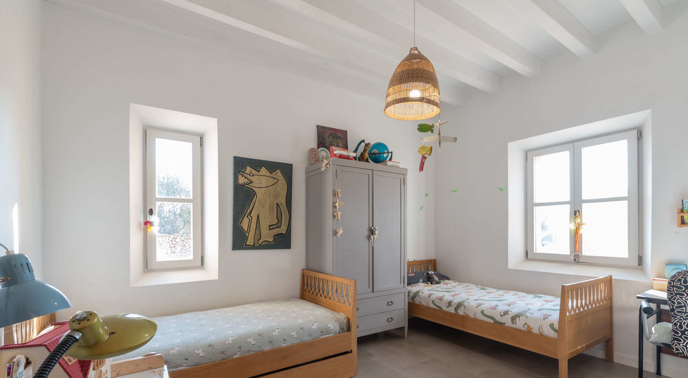 Die Finca bietet zwei liebevoll gestaltete Schlafzimmer und zwei moderne Badezimmer, die Komfort und Klarheit ausstrahlen. Der offene Wohnbereich verbindet moderne Architektur mit mallorquinischem Flair und führt hinaus auf die 36 m² große Porche – ein geschützter Platz, an dem Sonnenaufgänge, lange Sommerabende und stille Momente gleichermaßen zu etwas Besonderem werden.